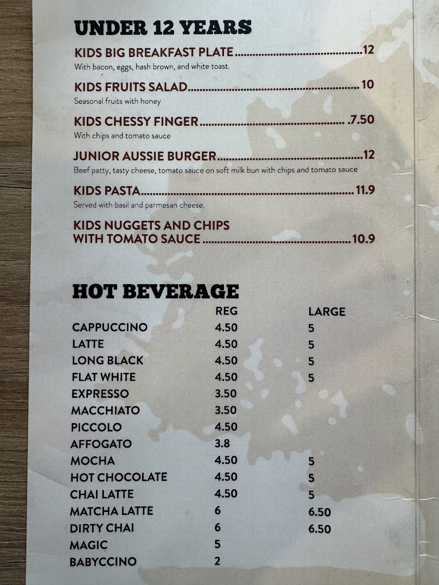 - Kiddie Delights: Kids can indulge in delicious milkshake options, available for only A$6.00.